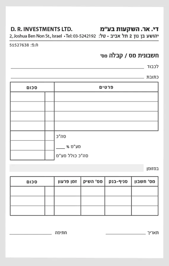 היה הראשון לכתוב סקירה “חשבונית קבלה דוגמא 004”